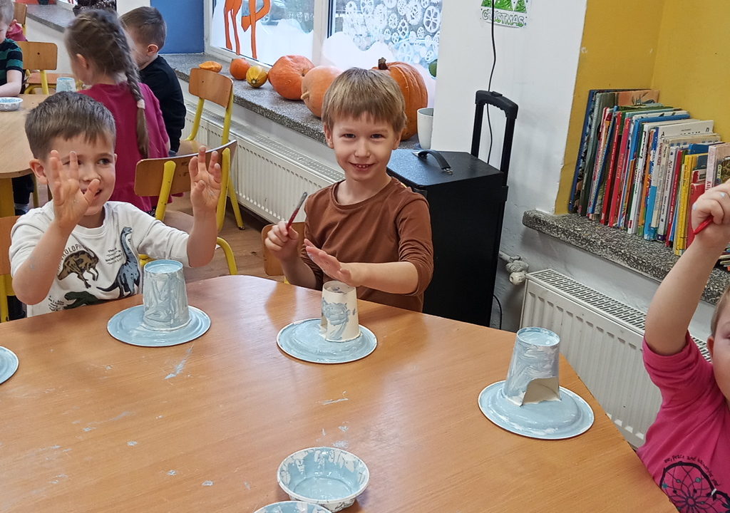 Ferie zimowe za nami, ale jak to ferie bez śniegu? Przedszkolaki świetnie poradziły sobie z tą sytuacją i same zrobiły śnieg, z którego powstały śnieżne kule i bałwanki. Dzieci robiły także gniotki, masę kisielową i różne prace plastyczne.