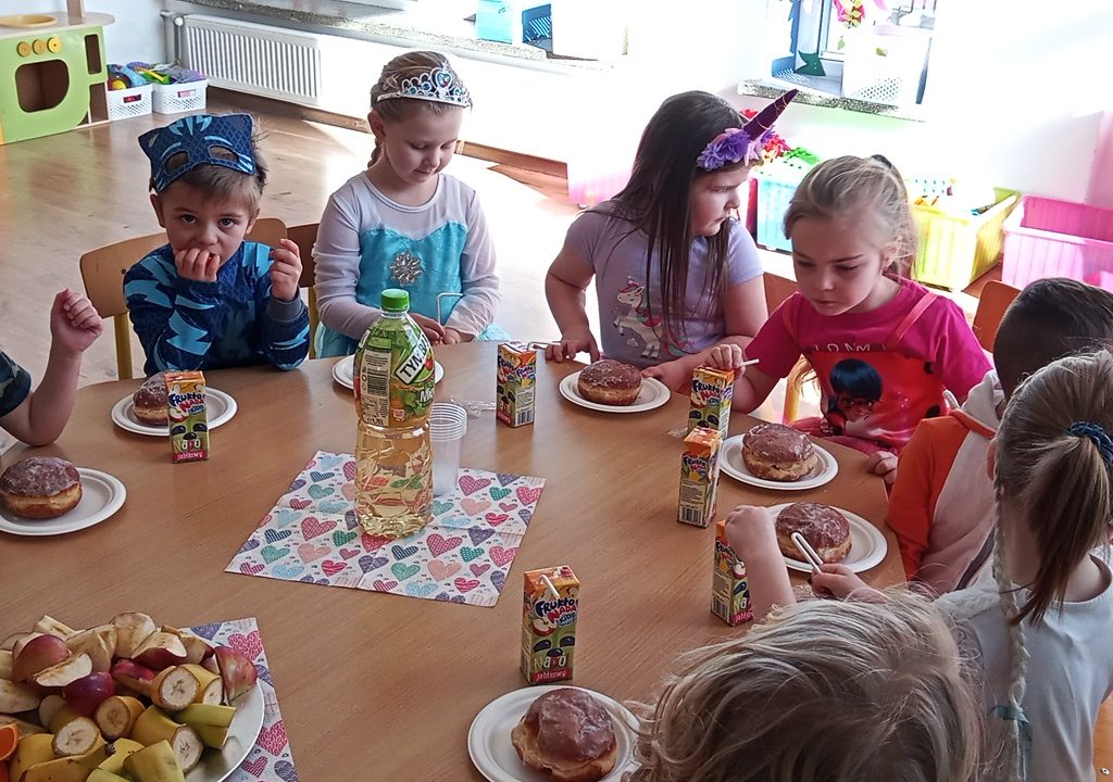 Były słodkie pączki i zabawa karnawałowa. Praca plastyczna i wspólne zabawy. To był dobry dzień.