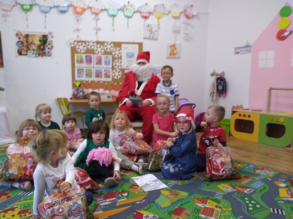 Mikołaj odwiedził Wisienki wręczając piękne podarunki. Były piosenki, wiersze, tańce wszystko w radosnej Mikołajowej atmosferze. Dziękujemy i zapraszamy Mikołaja za rok.