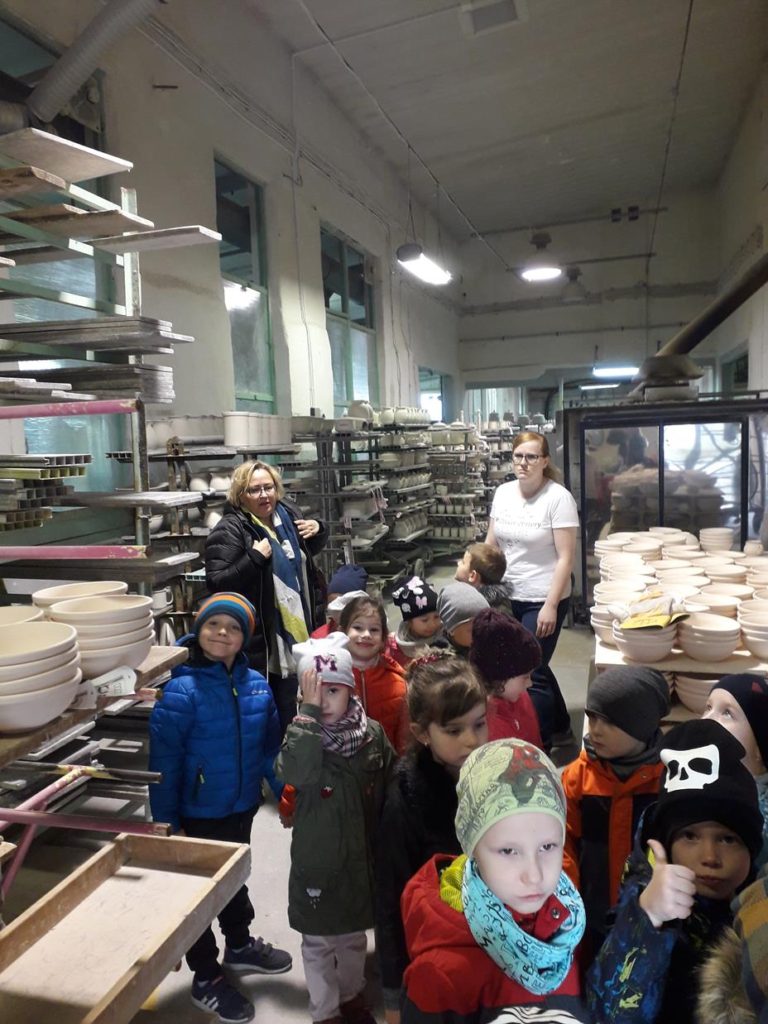 Grupa Jabłuszek odwiedziła bolesławiecka Manufakturę .Dzieci były bardzo zainteresowane etapami powstawania wyrobów ceramicznych, ale największa frajdę  przyniosły im warsztaty na których stworzyły własnego pomysłu wzory na miseczkach.